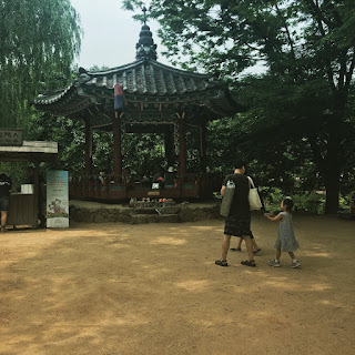 Another fun activity for Hudson was being taught how to play the janggu drum by a performance group. Hudson jumped right in and one of the performers helped him learn how to play the instrument, which he adored. SO YOU KNOW: You have two drumsticks, and tap twice on one side, and once on the other along with the beat. The performer said it was "Buh Bum, Bum" if you want to get technical. It was super fun and interactive. Afterwards Hudson really wanted to buy his own Korean drum. We were hopeful until we realized that a janggu drum costs around $200 US dollars. We will continue the search for a smaller or replica drum :)